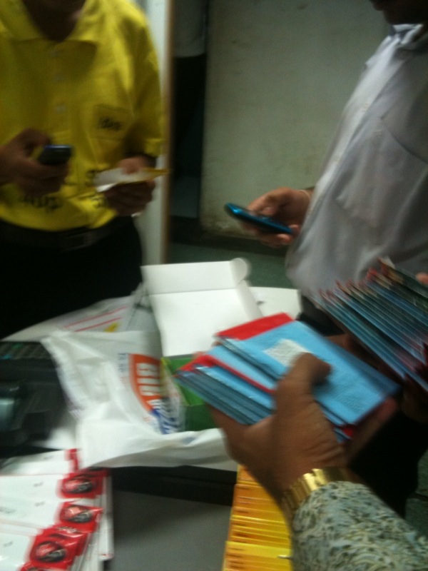 The many helping hands in the phone store- new phones and new sims