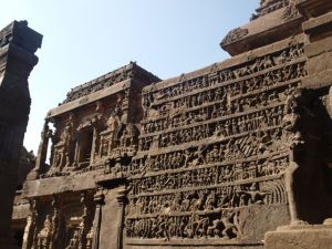 But Ellora holds the masterpiece: Kailash Temple, built from approximately 600 A.D. to 900 A.D. The temple was created by vertical excavation, meaning 200,000 tons of rocks were slowly chiseled from above to build and form a temple larger than the Parthenon. There are many levels and areas but in the center stands a gargantuan and intricately carved singular temple, made from just the one piece of rock left in the middle. It is the largest monolithic structure in the world. It would be unbelievable to create today, but to that the whole thing was carved out of a mountain from above with only a chisel and hammer is truly staggering.
